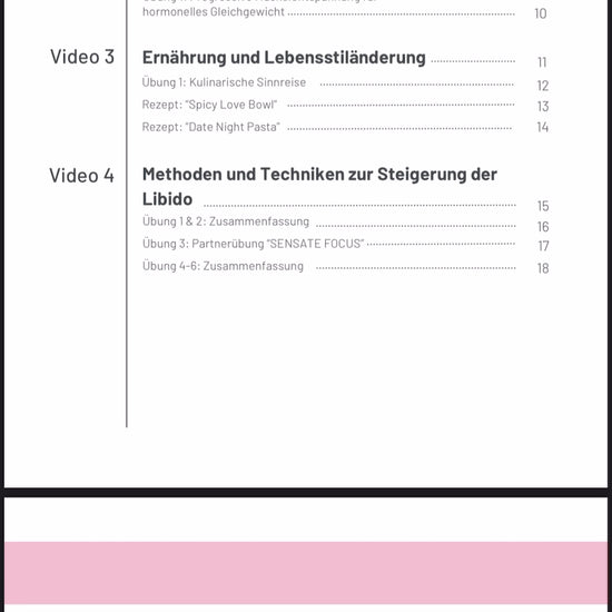 Jede Lektion enthält leicht umsetzbare Aufgaben, die Dir helfen, Deine Balance wiederzufinden und neue Wege zur Intimität zu entdecken.