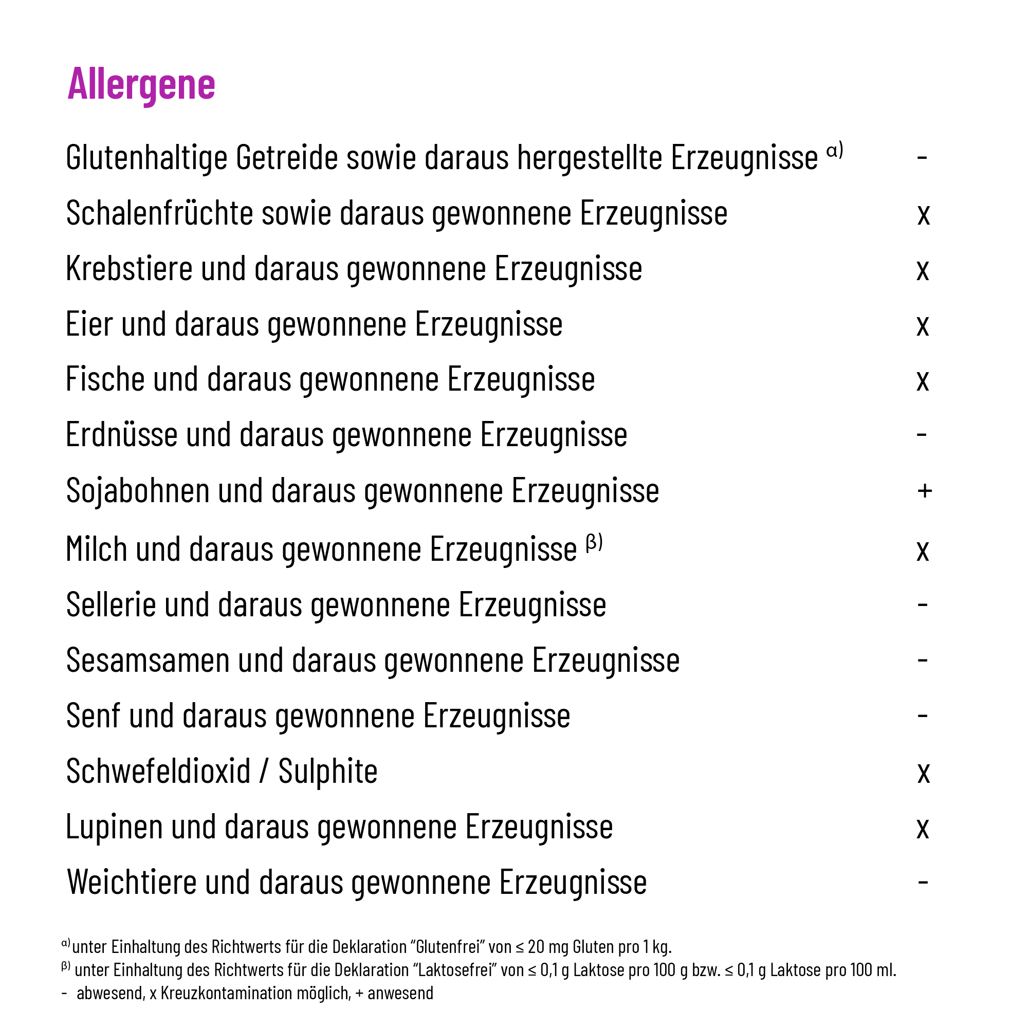 Das Produkt ist für eine vegetarische und vegane Ernährung geeignet.